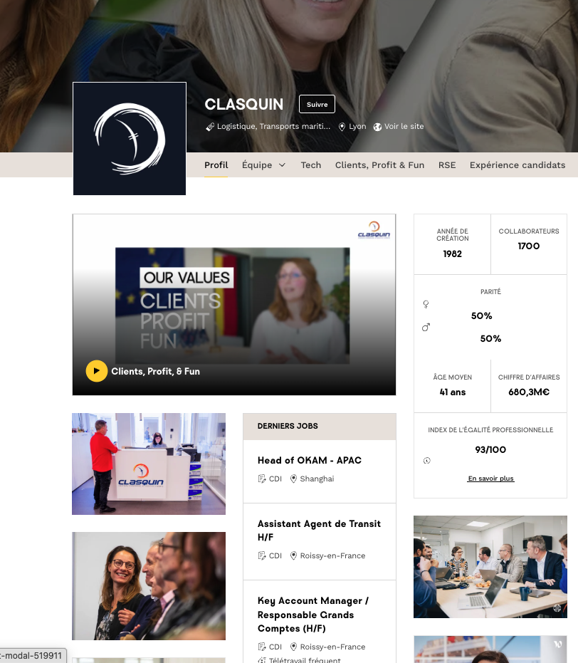 Quelles valeurs de CLASQUIN transparaissent sur votre page Welcome to the Jungle ?